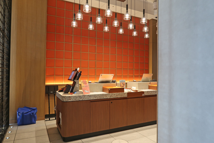 左/レセプションはエレベーターホールへの動線上にあり、チェックインの手続きはタッチパネルで操作。