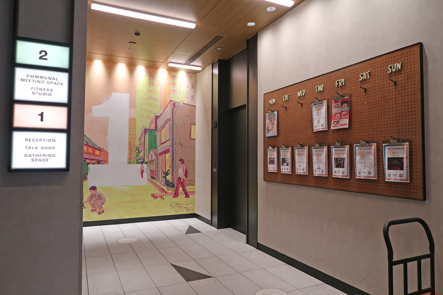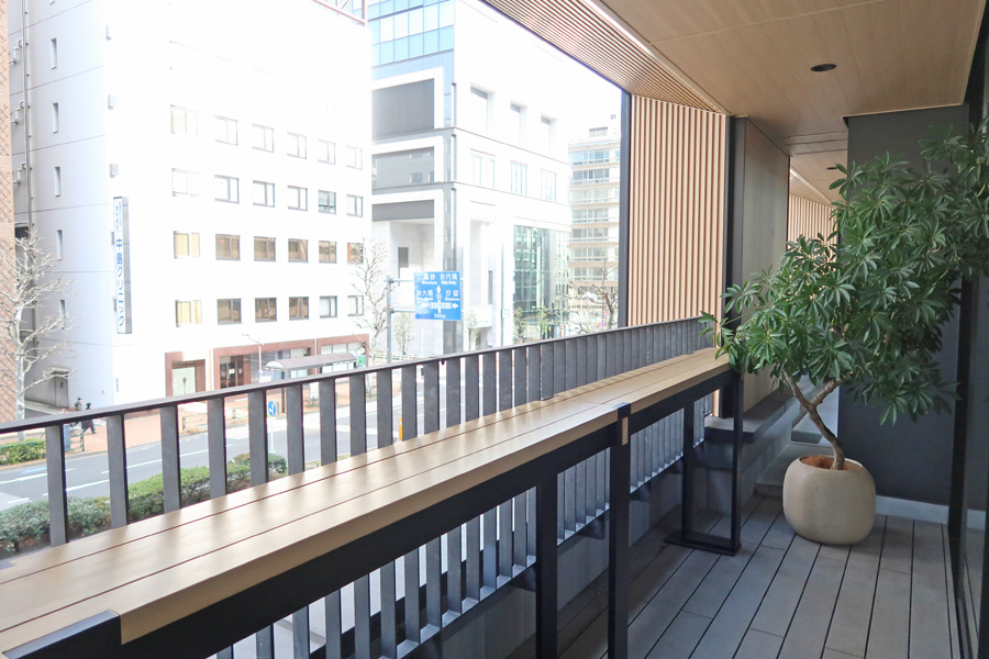 | 大阪に続いて誕生したキャプションブランドの2軒目の場所として白羽の矢が立てられたのは東京証券取引所が立地し、初めて銀行が造られた場所として風格ある建物も残る兜町。この地で暮らす人や働く人と旅人が気軽に交流できる場として再開発を手掛ける不動産会社とホテルのコンセプトがマッチしているのが特徴。2階には永代橋通りに面してゲストが自由に利用できるラウンジスペースやフィットネスジム、屋外テラスも設けられていて、街の一室に暮らしているような感覚を味わえるのも魅力のひとつ。 |
