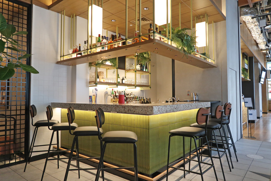 右/トークショップの一角にはバーカウンターも用意。ホテルより外部から訪れるゲストの方が多い印象。 |