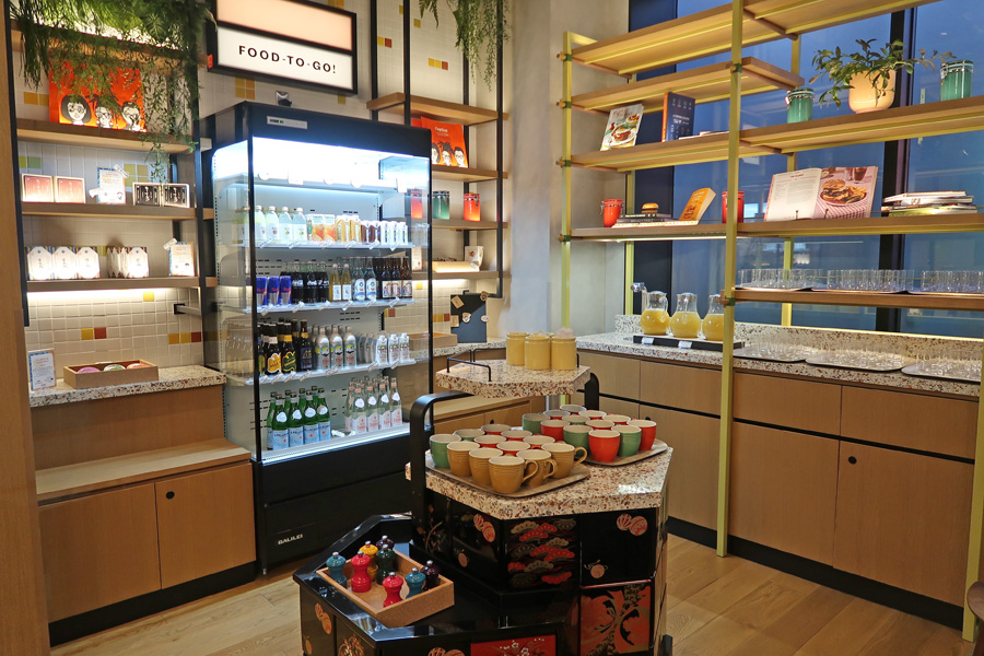 左/トークショップには飲み物や雑貨を扱うショップを併設している。朝はドリンクバーのスペースになる。