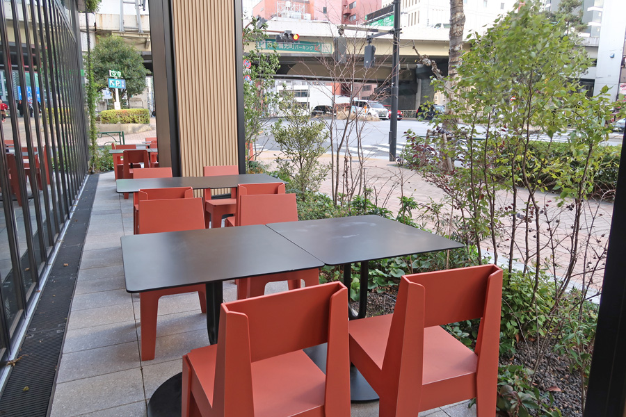 右/永代橋通りに面したエリアには洒落たテラス席があり、街歩きの途中で気軽に立ち寄れる雰囲気。 |