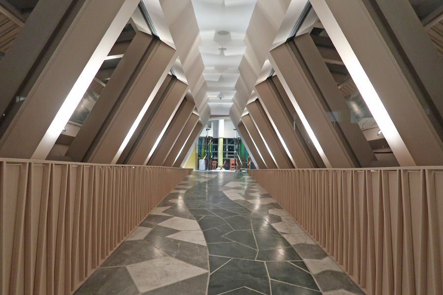 左/ロータリーの中央に位置する別棟のプールへつながる渡り廊下。メンテナンスで営業休止していた。