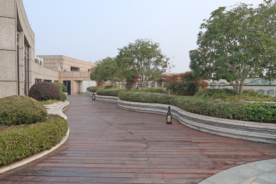 右/クラブラウンジには屋上テラスが併設されていて、正面から西湖のパノラマを遮るものなく楽しめる。 |