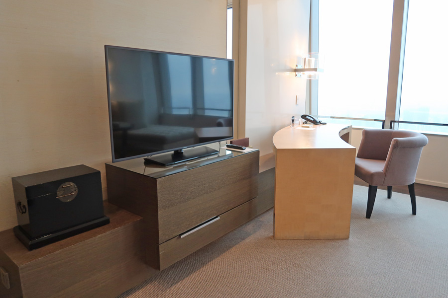 左/87階に位置するロビー。ラウンジとダイニングが面積の大半を占め、ロビー自体はとてもコンパクト。