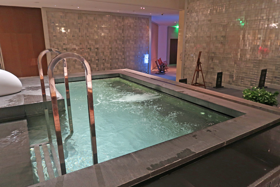 左/プールの延長線上には一体的に造られたジャグジーが設置されていて、窓越しに景色も楽しめる。