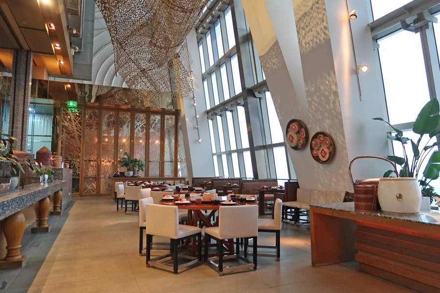 右/91階にある100センチュリーアベニュー。高い天井を持つ東側のフロアでは広東料理が堪能できる。 |