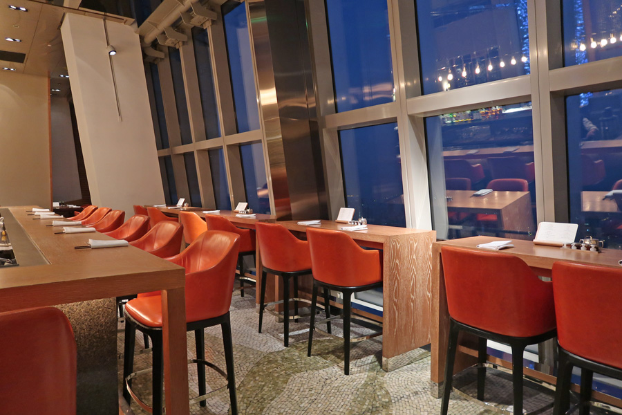 右/100センチュリーアベニューバー。西側の夜景が楽しめるカウンター席は常に席が埋まるほど人気。 |