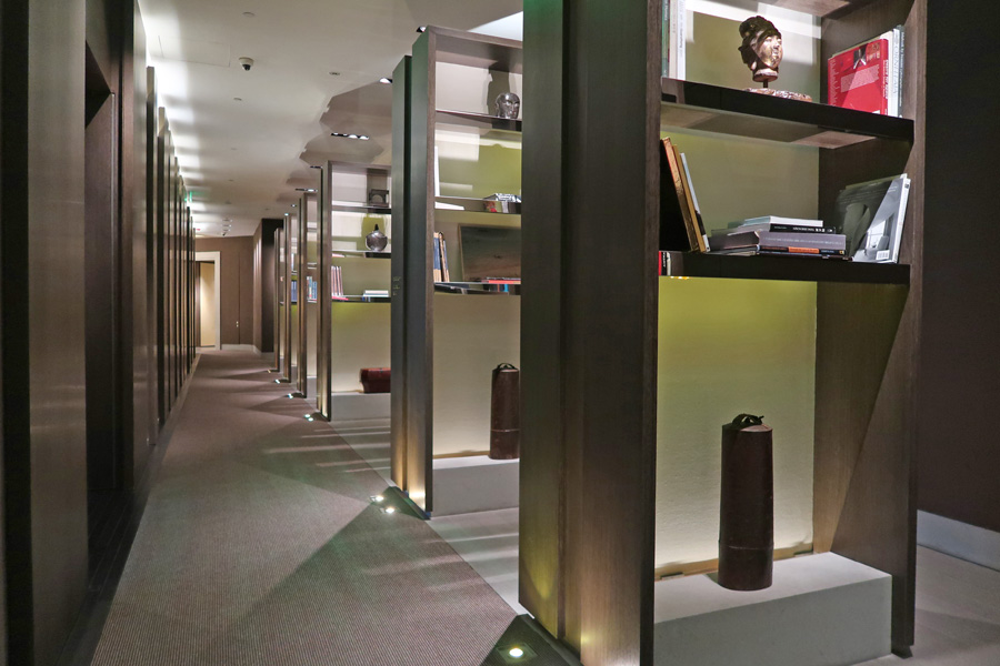 右/85階のプールの反対側に現れるライブラリースペースはパークハイアット東京を彷彿とさせる空間。 |