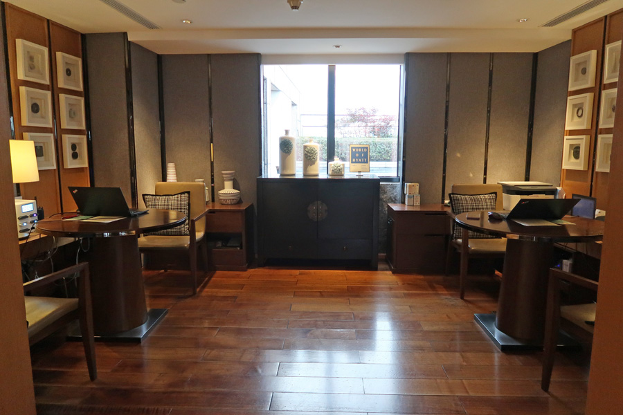 右/クラブラウンジ専用のレセプション。チェックインの際に申し出るとスタッフが8階まで案内してくれる。 |