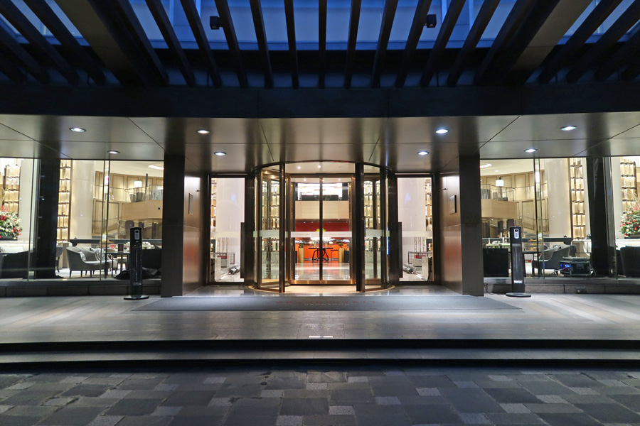 左/2階にあるグランドハイアットステーキハウス。エントランスから奥へ伸びる長いアプローチも美しい。