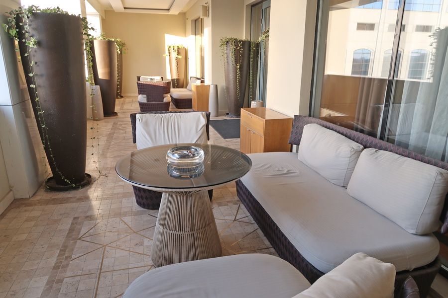 右/クラブラウンジには広いテラスも備わっていて、サンセットを見ながら新市街方面の景色を楽しめる。 |