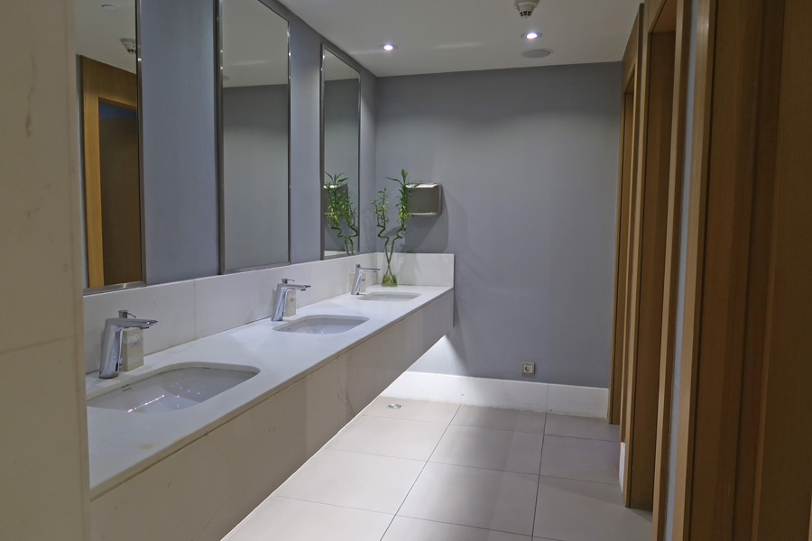 左/ロッカールーム内は個室の更衣室、洗面エリア、大きめのシャワーブースに区画が分けられ快適。