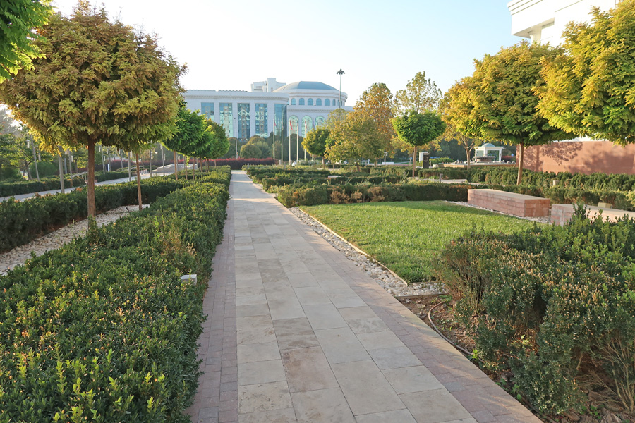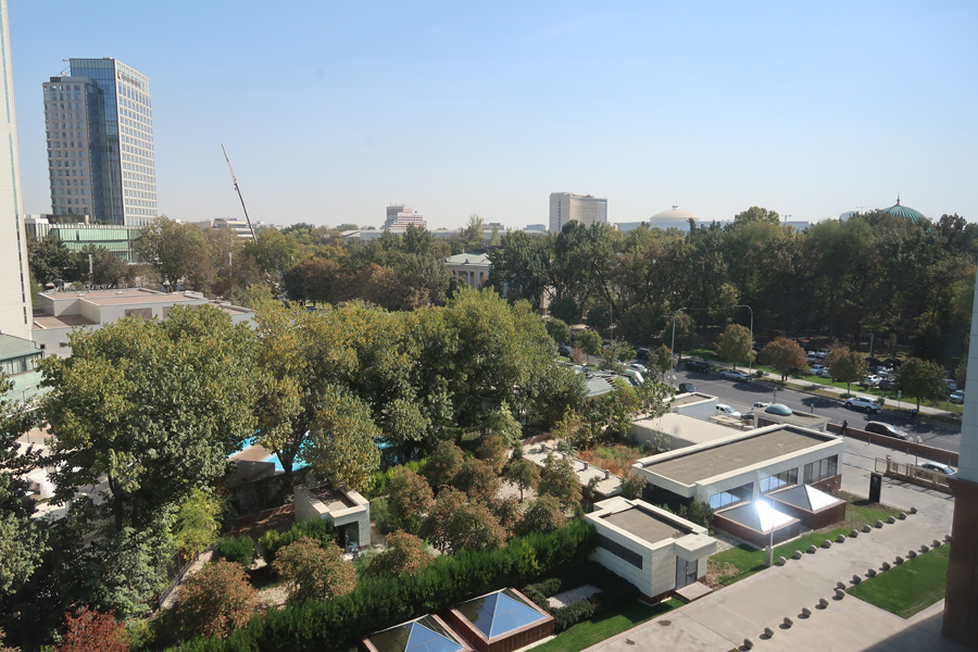 | タシュケントでも屈指の規模を誇り、独立したコンベンションホールも備えた大型ホテル。官公庁や歴史的建造物、博物館が軒を連ねるエリアにあり、敷地の入口からホテルのエントランスまでは美しい庭園が広がっている。地下鉄駅は3駅利用可能で行き先によって使い分けられ、北側の斜向かいにはスーパーマーケットもあり、観光やショッピングにも便利な立地。ホテル内にはダイニング、スパ、プールなどの施設が一通り揃い、余裕のある設計で造られているのでホテルに籠ってゆっくり過ごすことができる。 |